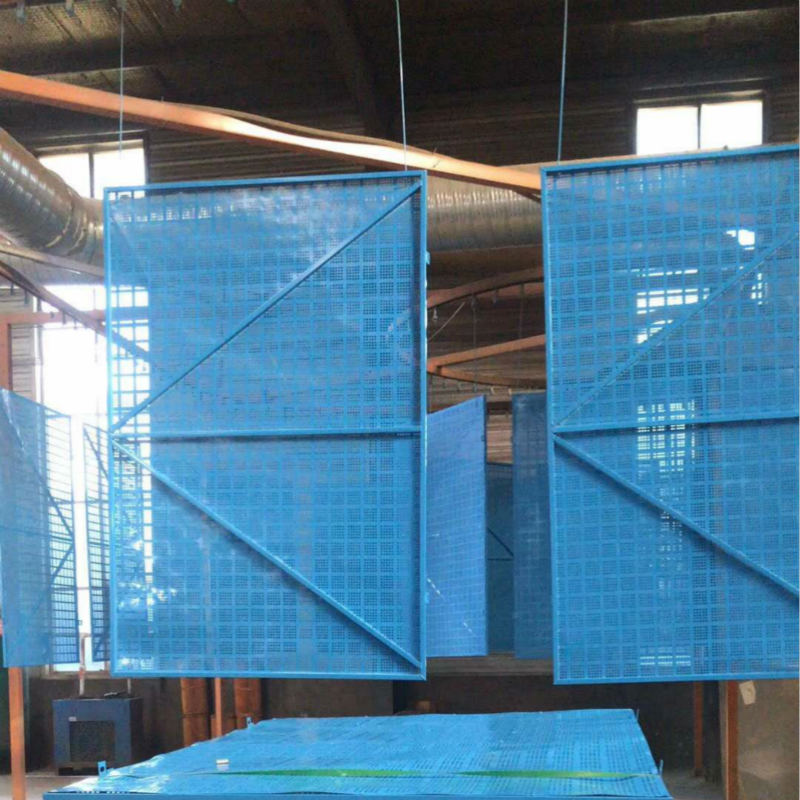 全部為金屬材料,邊框采用20*30矩形管,內容采用鋼笆沖孔板,為鍍鋅鋼板,整體噴塑處理,藍色,綠色,整車配送工地,外架支撐,自動爬升,無需人工搬動。 通用板材:優質鍍鋅鋼板 產品規格:1.8/1.2m,1.5/2.42m,1.5/1.8m 可根據客戶爬架實際尺寸生產定做。